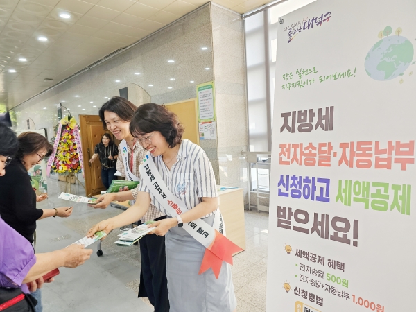 대덕구는 종이 고지서 제작 절감을 통한 탄소중립 실현을 위해 전자고지 신청을 적극 권장하고 있으며 이날 홍보 리플릿 배부하고 모바일 앱을 통한 전자송달 신청 방법을 직접 안내하는 등 적극적으로 홍보에 나섰다.