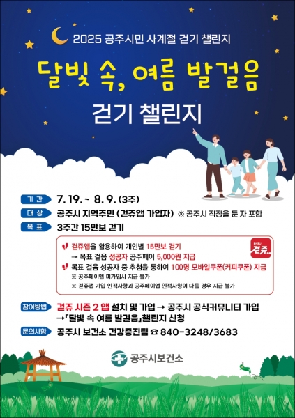 공주시, ‘달빛 속 여름 발걸음’ 걷기 챌린지 운영