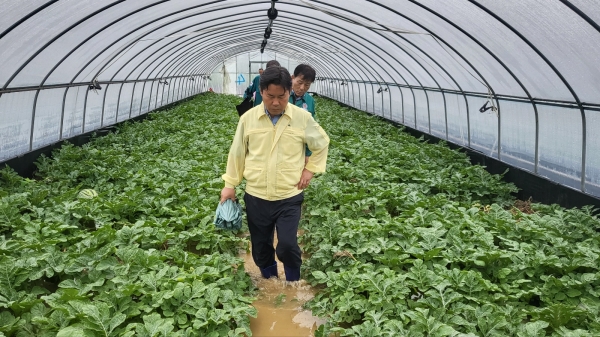 특히 16일 밤에서 17일 새벽 사이 200mm가 넘는 집중호우가 내려수박, 멜론 등 시설하우스가 많은 피해를 입었다.