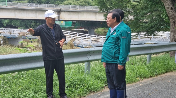 이어 대곡리 맹곡천 수해현장, 세종벤처밸리산업단지 진입도로 개설공사 현장 등을 방문해 하천주변 빗물받이, 배수로 등 배수시설, 건설현장 안전관리 및 비상대응체계 등을 꼼꼼히 점검했다.