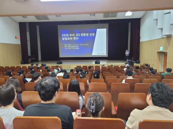 연수에서는 대전고 정광문 교사가 강사로 나서 2026학년도 수시모집 대학별 전형 분석과 지원전략을 중심으로 현장 사례 중심의 실질적인 정보를 제공했다.
