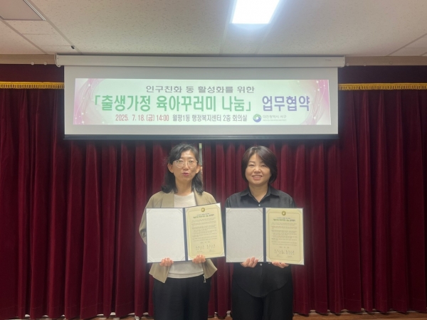 이번 협약은 출산 및 양육 가정의 초기 부담을 덜고 지역사회 공동육아 분위기를 조성하기 위한 ‘인구 친화 동 활성화 사업’의 일환으로 추진됐다.