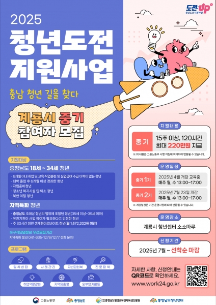 [Ytv영상스토리] 계룡시와 충청남도는 고용노동부가 주관하는 ‘청년 도전지원사업’ 하반기 프로그램 참여자를 추가 모집한다고 밝혔다.