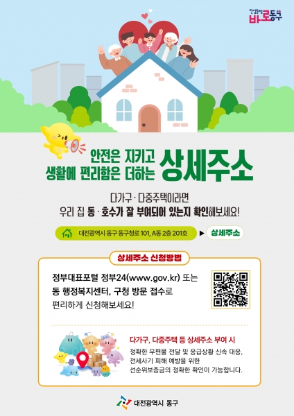박희조 동구청장은 “상세주소 부여는 주민의 생활 편의를 높이는 것은 물론, 전세사기 예방과 응급 구조, 복지 사각지대 해소에 실질적인 도움이 될 것”이라며 “앞으로도 구민의 권익 보호와 생활 불편 해소를 위한 생활밀착형 정책을 계속해서 확대해 나가겠다”고 말했다.