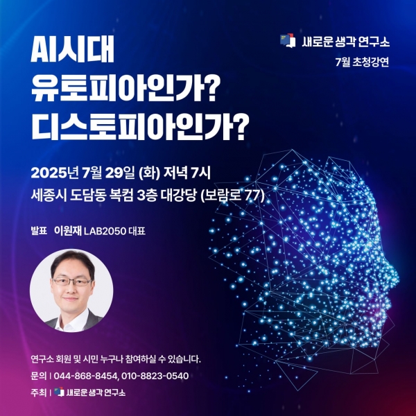 새로운 생각 연구소 7월 초청 강연회 개최 “AI시대. 유토피아인가? 디스토피아인가?”