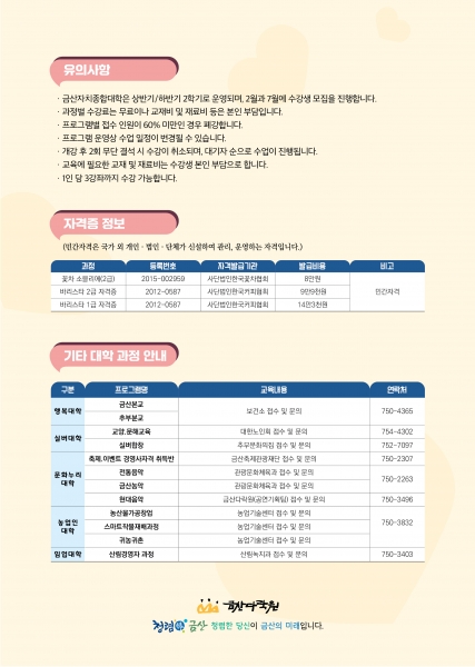금산다락원, 2025년 하반기 금산자치종합대학 수강생 모집