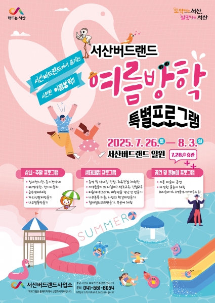 해당 프로그램은 오는 7월 26일부터 8월 3일까지 운영되며 서산버드랜드에서 다양한 놀거리와 체험 행사가 진행된다.