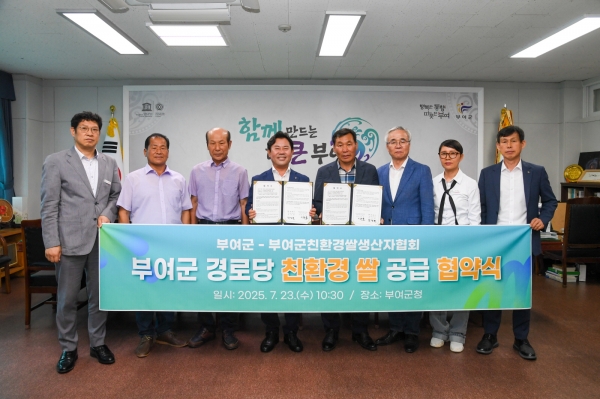 박정현 군수는 "이번 협약은 단순한 급식 지원을 넘어 지역 내 친환경 쌀 소비를 촉진하고 농민들의 판로 확대를 지원하는 데에도 큰 의미가 있다"라며 "이를 통해 지역 농업의 지속 가능성을 높이고 지역 어르신들에게 건강한 먹거리를 제공하는 1석 2조의 효과를 기대한다"라고 말했다.