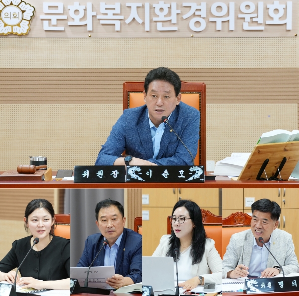 문화복지환경위원회는 이춘호 위원장을 비롯한 김은아 부위원장, 맹의석·천철호·김미성 위원으로 구성됐다.