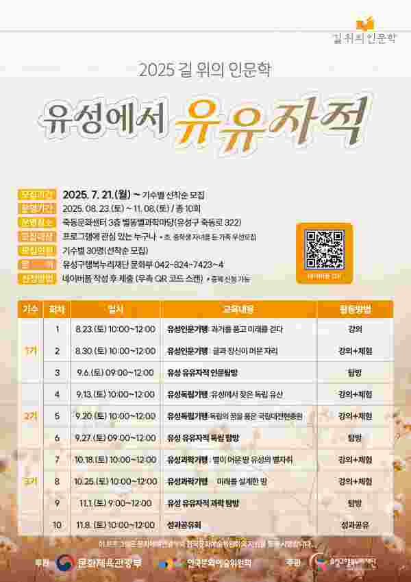 강도묵 이사장은 “이번 프로그램은 유성의 숨겨진 인문학적 가치와 자원을 재발견하는 계기가 될 것”이라며 “앞으로도 지역의 인문 자원을 활용한 문화 프로그램을 지속적으로 발굴하겠다”고 말했다.