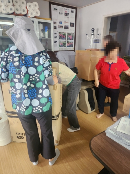 아산시 사회복지과는 어르신들이 새 거처에서 불편함 없이 지낼 수 있도록 마을회관을 청소하고 의류, 생필품, 세제 등을 신속하게 지원했다.