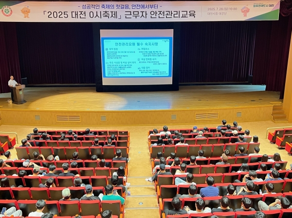 [Ytv영상스토리] 대전시는 28일 ‘2025 대전 0시 축제’의 성공적인 개최와 안전사고 없는 행사 추진을 위해 근무자를 대상으로 안전관리 교육을 진행했다.