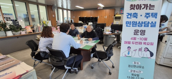 상담 내용은 △건축 허가 및 신고 절차 △가설건축물 축조 신고 △건축물 해체 및 멸실 관련 절차 △빈집 정비 및 슬레이트 처리 사업 안내 △농지·산지 관련 복합 민원 연계 △주택 융자 및 각종 건축 관련 지원사업 등 건축·주택 전반에 걸쳐 폭넓게 다뤄진다.