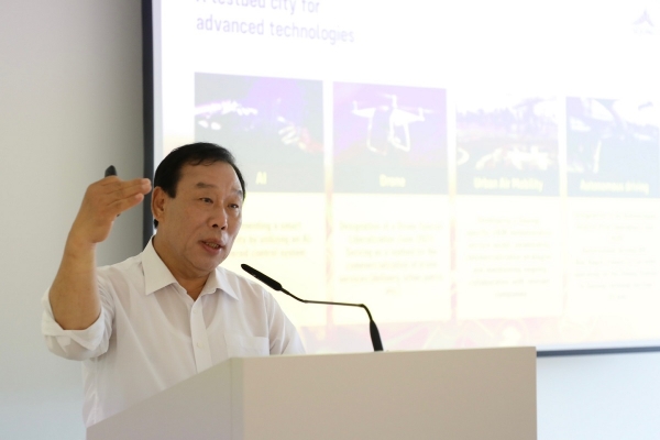 최 시장은 “인공지능의 발전으로 예측 불가능한 시대를 맞아 이집트, 사우디아라비아 등 세계적으로 신수도를 건설 또는 이전하기 위한 움직임을 보이고 있는데, 그 핵심은 스마트시티”며 “우리시는 스마트시티 국가시범도시로 지정돼 인공지능, 자율주행, 항공무인비행 등을 실증, 적용하고 있다”고 소개했다.