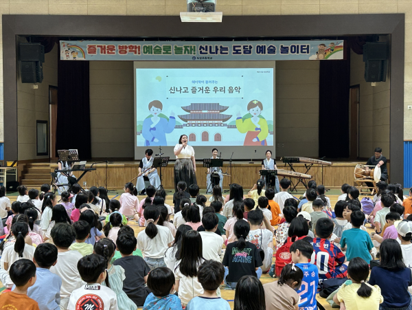특히 7월 24일부터 25일까지 전교생을 대상으로 진행된 ‘신나는 도담예술놀이터’에서는 전통 국악, 버나놀이 공연과 더불어 현악기 연주, 샌드아트 등이 어우러진 다채로운 무대를 통해 학생들에게 예술적 감성과 깊은 감동을 선사했다.