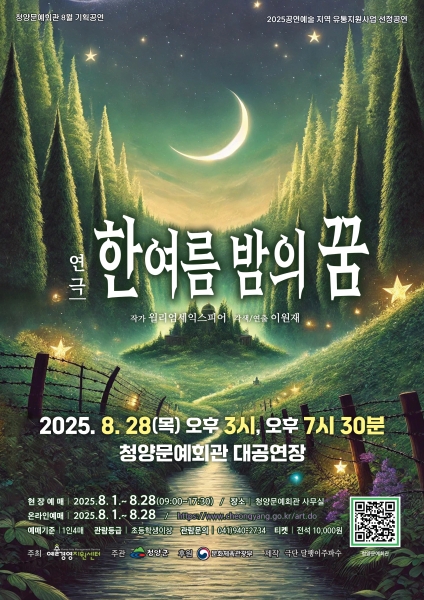 [Ytv영상스토리] 청양군이 오는 28일 오후 3시와 7시 30분 2회에 걸쳐 청양문예회관 대공연장에서 연극 ‘한여름 밤의 꿈’을 선보인다.