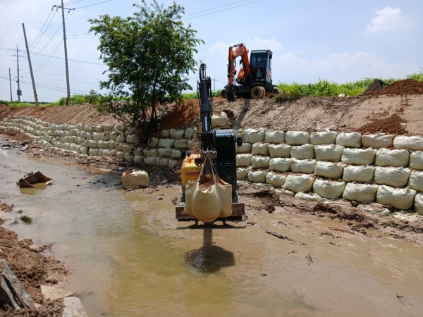 시는 지난달 16일부터 20일까지 이어진 집중호우로 제방 유실 등 90개 하천에 피해가 발생함에 따라 추가 유실 피해 방지를 위해 마대 쌓기 등 응급복구공사를 하고 하천 퇴적물 준설공사 등을 추진했다.