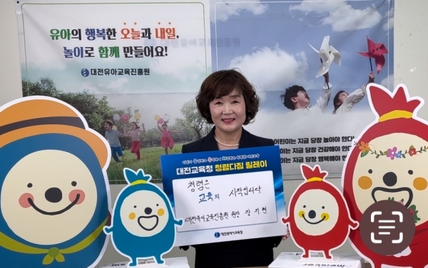 대전유아교육진흥원 장지현 원장은 “청렴은 교육의 시작이다”라는 의미를 되새기고“아이들에게 정직을 가르치기 위해 바르게, 공정하게, 투명하게, 책임있게 청렴한 교육문화를 만들어 가겠다”는 청렴 메시지를 전했다.