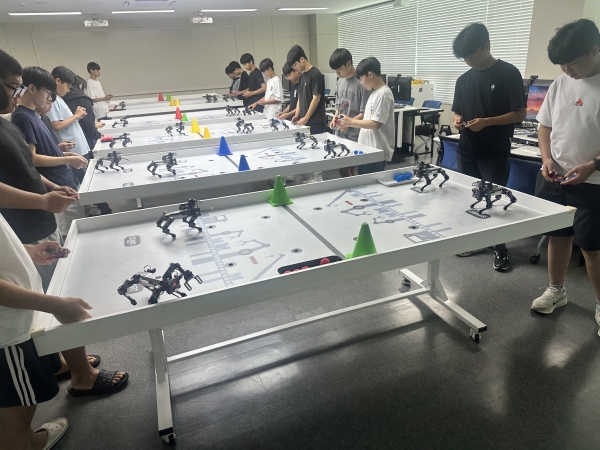 초등 과정은 ‘AI 휴머노이드 로봇 꼭두’, ‘레고 트레이너 로봇’, ‘핑퐁큐브 변신로봇’을 활용해 위험 감지, 건강 운동, 게임형 미션 등 다양한 주제를 학생 중심 실습으로 구성했으며 센서 작동 원리, 블록코딩 설계, 협업 미션 수행 등을 통해 디지털 사고력과 실천 역량을 기를 수 있도록 진행됐다.