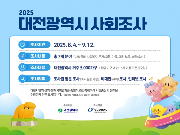 대전시, 5천 가구 대상 2025년 사회조사 실시