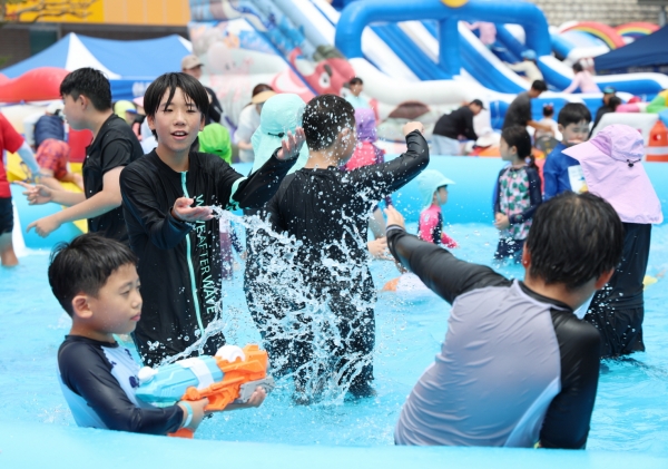 워터 슬라이드를 비롯해 물총놀이, 실내 클라이밍, 오리 건지기, 자석 낚시 등 다양한 프로그램이 펼쳐됐으며 휴식을 위한 돗자리존과 먹거리 부스도 함께 조성돼 큰 인기를 끌었다.
