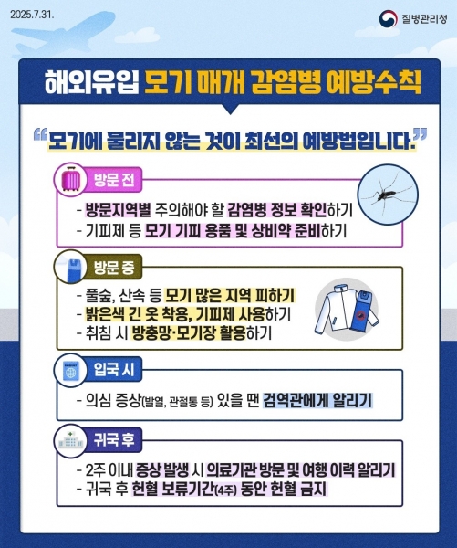 홍성군 정영림 보건소장은 “휴가철을 맞아, 해외여행을 계획할 경우, 중국 광둥성, 인도네시아, 필리핀 등 해당 국가의 감염병 발생 현황과 주의 사항을 꼭 확인하고 예방수칙 준수로 건강관리 및 감염병 예방을 부탁드린다”며 “적극적인 홍보와 방역 활동을 통해 감염병 전파 차단에 전력을 다하겠다”고 강조했다.
