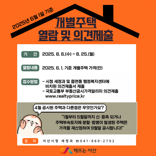 서산시, 6월 1일 기준 개별 주택 공시가격 열람 및 의견 청취