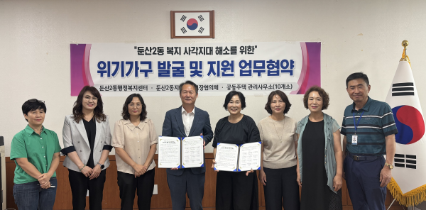 양동석 둔산2동장은 “이번 협약으로 둔산2동의 복지공동체가 더욱 단단해질 것”이라며 “소외된 이웃이 지역 안에서 따뜻한 보살핌을 받을 수 있도록 최선을 다하겠다”고 말했다.