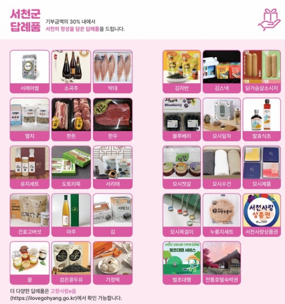 서천군, 고향사랑기부제 답례품 공급업체 공개모집
