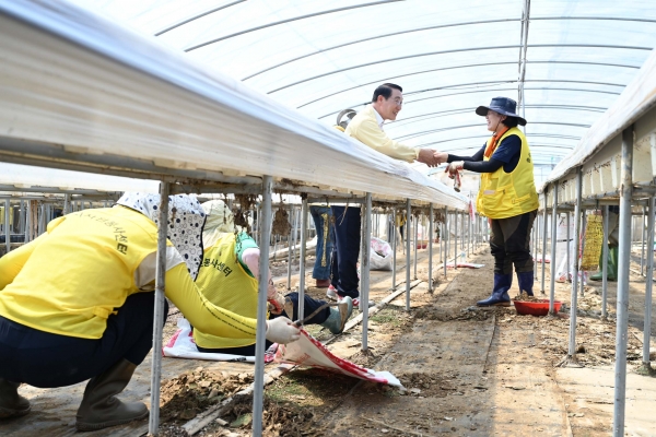 농경지 피해가 컸던 홍성군은 토사가 가득 들이닥친 농장의 비닐하우스 안에서 주로 활동이 이루어졌으며 35도를 넘나드는 폭염 속에서도 토사 제거와 폐기물 분리 및 운반·처리를 위해 봉사자들이 굵은 땀을 쏟았다.