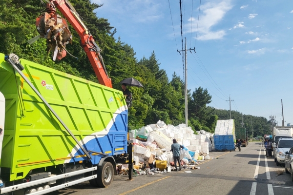 군은 이달 초 폐 스티로폼 수거 인력 및 장비를 추가로 확보하고 환경관리센터 내 폐스티로폼 감용기 운용시간을 늘리는 등 항·포구 폐기물의 원활한 처리를 위한 총력 대응에 나서고 있다고 12일 밝혔다.