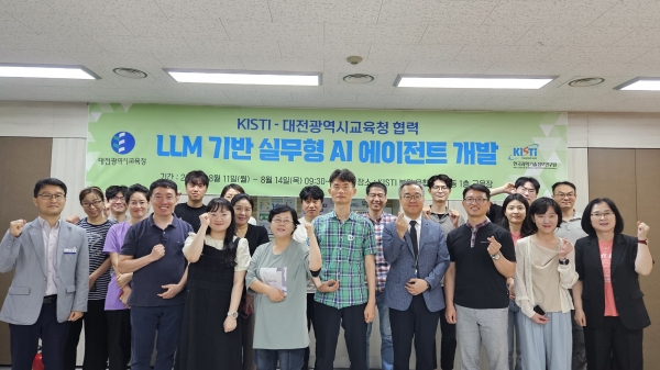 [Ytv영상스토리] 대전시교육청은 8월 11일부터 14일까지 4일간(총 24시간) 한국과학기술 정보연구원(KISTI)과 협력해 ‘LLM(대규모 언어모델) 기반 실무형 AI 에이전트 개발 직무연수 (심화과정)’을 운영한다고 밝혔다.