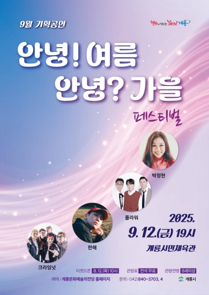 계룡시, ‘안녕여름 안녕?가을 페스티벌’ 9월 콘서트 개최