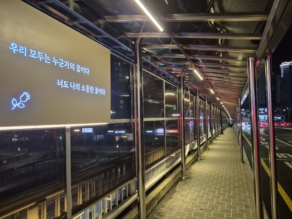 특히 두정역 1번 출구 택시승강장 앞에는 따뜻한 응원 문구가 삽입된 조명을 설치해 청년들에게 정서적 위로를 전하고 있다.