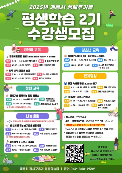 계룡시, 2025년 2기 평생학습 프로그램 수강생 모집