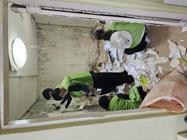 이번 주택 수리는 남서울대학교 대학생 봉사단과 외부 전문가로 구성된 봉사단체가 참여해 도배, 장판 교체, 주방 개보수, 청소 등 전반적인 집수리 활동을 펼쳤다.