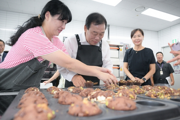 최민호 시장은 수강생들과 제빵 작업을 함께하며 네 명의 자녀를 키우는 김진영 강사에게 육아에 대한 생생한 의견부터 가정과 직장을 오가는 일상에서 겪는 애로사항을 경청했다.