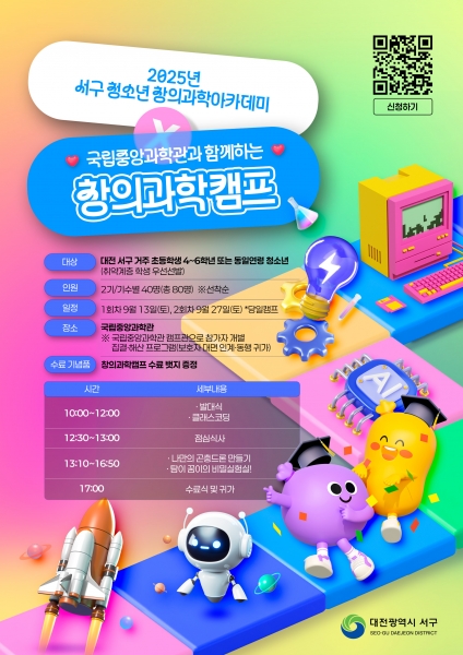 [Ytv영상스토리] 대전 서구는 과학교육 격차 해소와 창의 인재 양성을 위해 지난 5월부터 운영한 ‘서구 청소년 창의과학아카데미’의 마지막 과정으로 ‘국립중앙과학관과 함께하는 창의 과학 캠프’ 2기 프로그램을 오는 9월 진행한다.