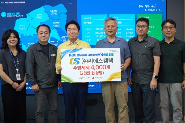 ㈜씨에스켐텍, 아산시 호우 피해 주민 위해 2천만원 상당 주방세제 기부