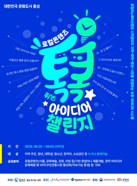 [Ytv영상스토리] 홍주문화관광재단과 청운대는 오는 25일부터 9월 5일까지 2주간 ‘로컬콘텐츠 톡톡 아이디어 챌린지’를 개최한다.