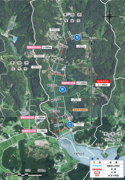 군에서는 이번 집중호우로 제방 유실 및 하천 시설물 붕괴, 농경지 침수 피해가 발생한 청동천 일원에 대해 신속한 복구계획을 수립했으며 행정안전부와 충청남도에 지속적으로 개선복구사업을 건의해 최종 확정됐다.