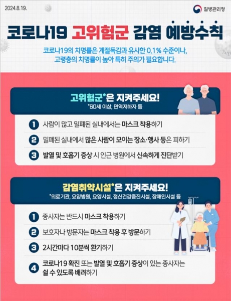 아울러 요양병원·요양시설 등 감염취약시설에는 종사자와 보호자, 방문자의 마스크 착용과 정기 환기 등 예방 조치를 철저히 이행해 줄 것을 당부했다.