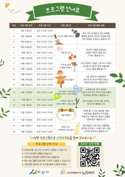 아산시, 가을철 신정호 정원문화체험 프로그램 운영