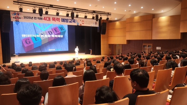 교육은 계명대학교 장재성 교수를 강사로 초빙해 ‘성평등·성인지 감수성 함양 및 조직 내 4대 폭력 예방’을 주제로 진행됐다.