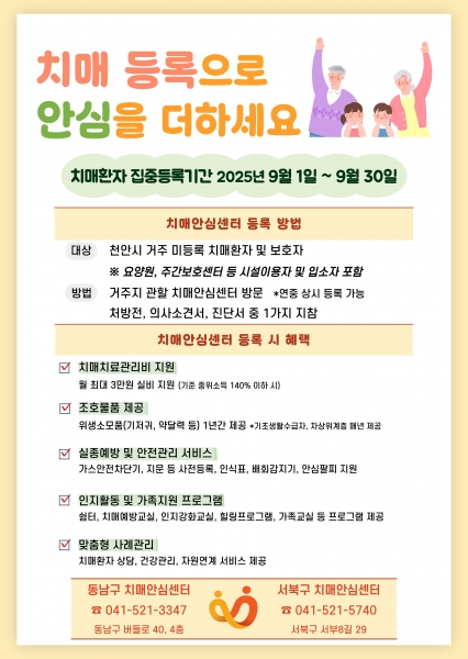 천안시 “치매 등록으로 안심을 더하세요”