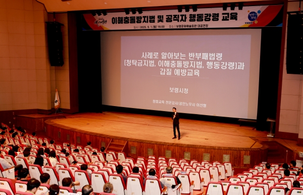 이번 교육은 공직자의 청렴의식 제고와 부패 방지를 위해 마련됐으며 국민권익위원회 청렴연수원 전문 강사를 초청해 공직사회에서 발생할 수 있는 다양한 부패 사례와 예방 방안에 대한 실질적인 교육을 진행했다.