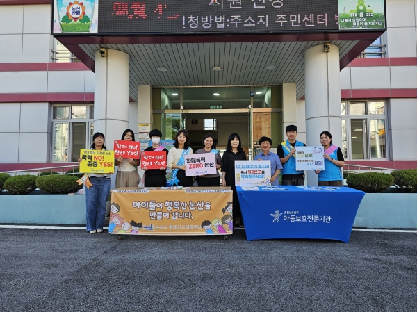 이번 캠페인에는 충남남부아동보호전문기관과 교직원들이 함께 참여해 아동학대 예방과 아동권리 존중 문화를 확산하기 위한 목소리를 보탰다.