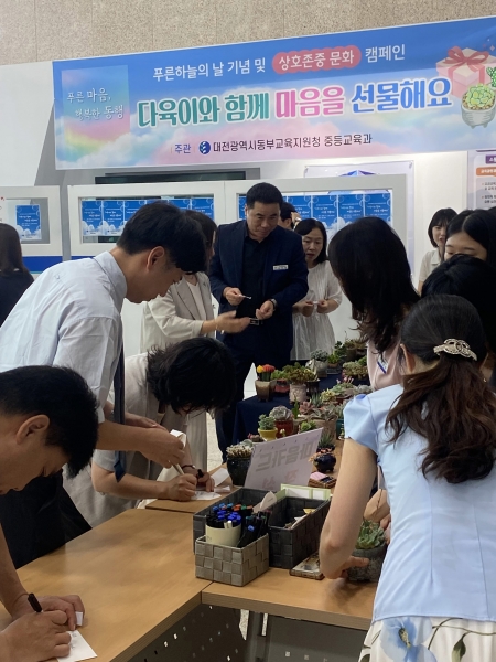[Ytv영상스토리] 대전동부교육지원청은 9월 4일 중등교육과 주관으로 전 직원이 참여하는 푸른하늘의 날 기념 및 상호존중 문화 캠페인을 실시했다고 밝혔다.