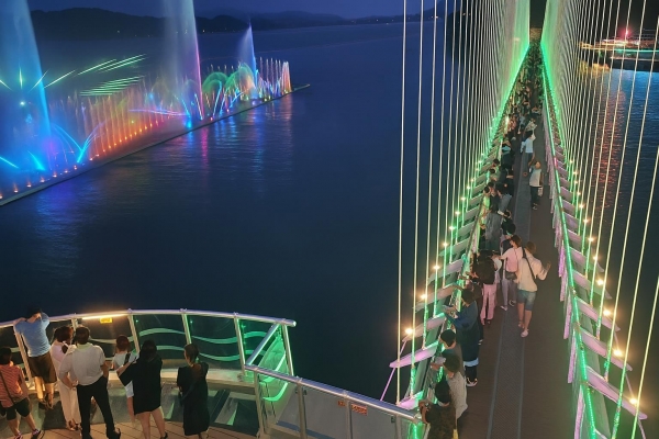 [Ytv영상스토리] 예산군의 대표 관광 명소인 예당호 출렁다리와 음악분수가 올여름 한층 업그레이드된 무대로 방문객을 맞이하고 있다.
