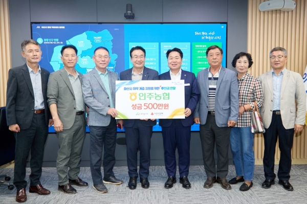 [Ytv영상스토리] 아산시는 9일 인주농협 임직원들이 지역 취약계층을 지원하기 위해 성금 500만원을 기부했다고 밝혔다.